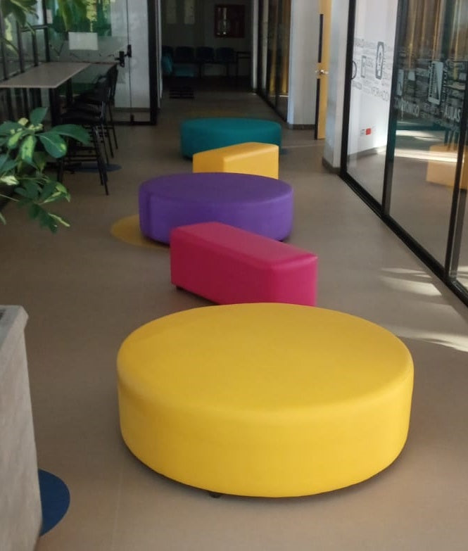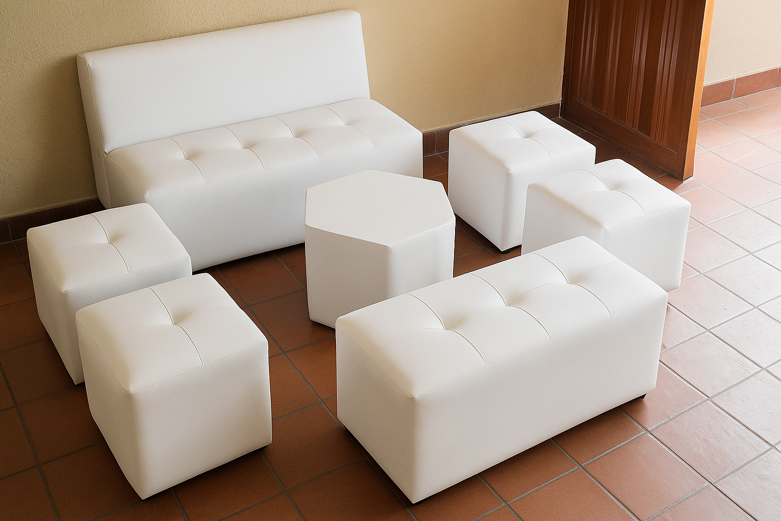 Fabricamos nuestros puffs con materiales de alta calidad: espuma de densidad premium y telas resistentes con acabados impecables para garantizar durabilidad.