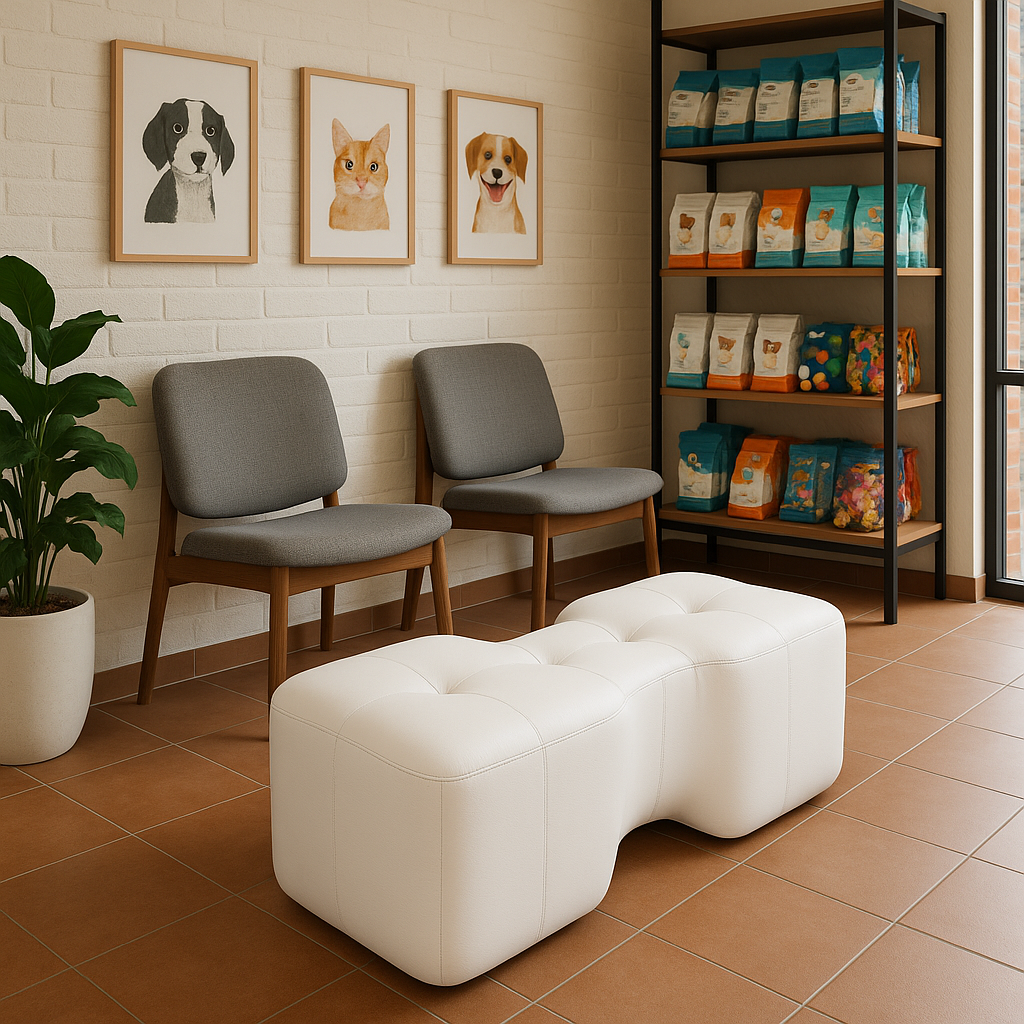 Puff en forma de hueso, ideal para tiendas de mascotas como accesorio decorativo y funcional, como en recepción, en el hogar para tus mascotas.